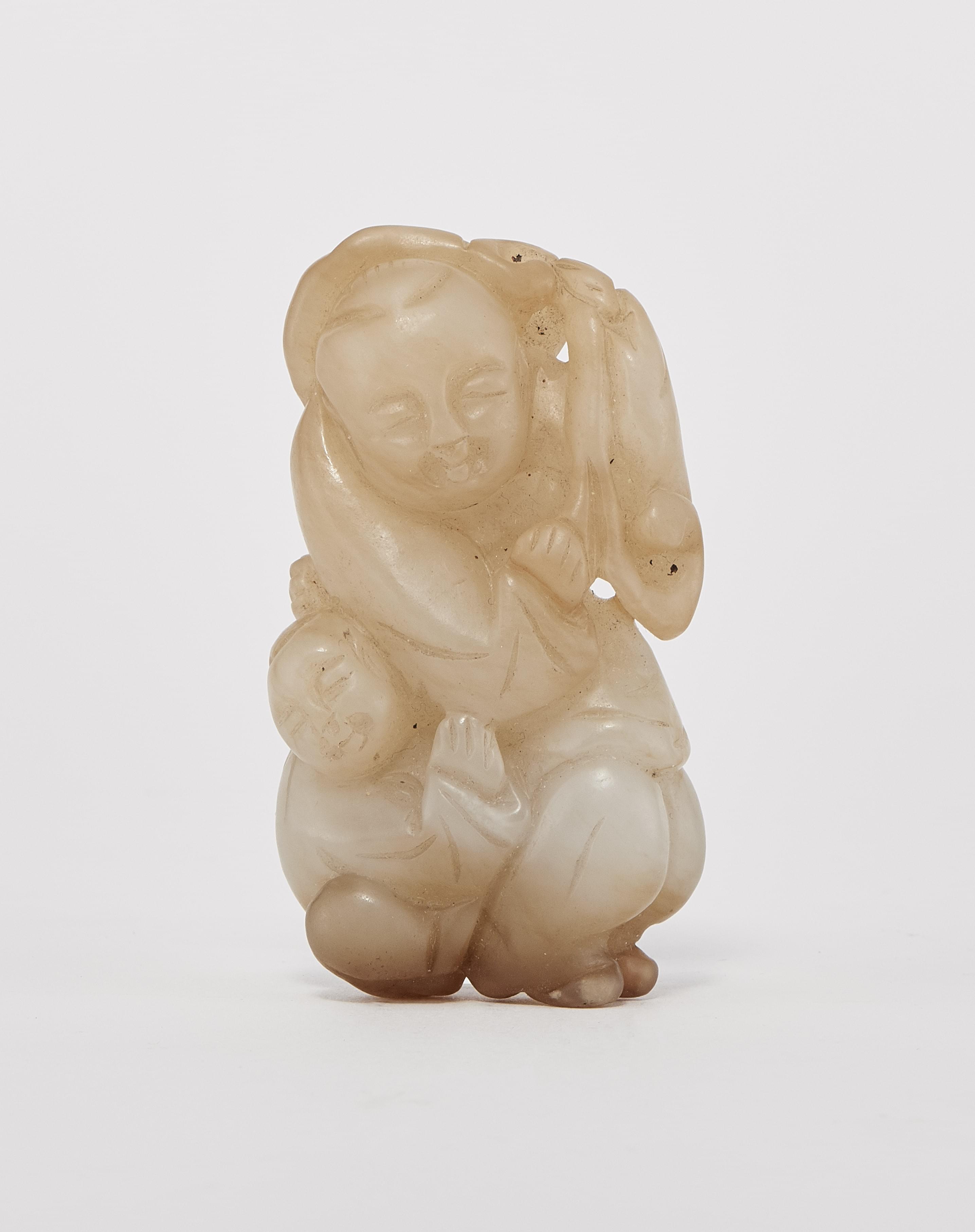 3617. Groupe de deux personnages en jade brun, Chine