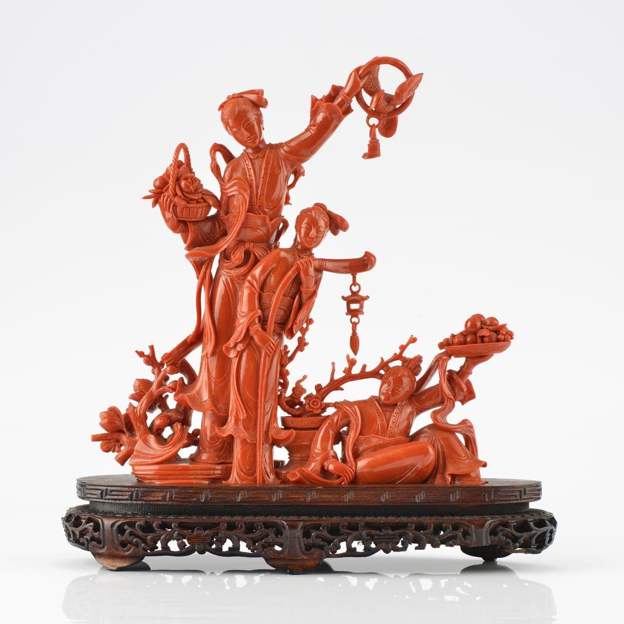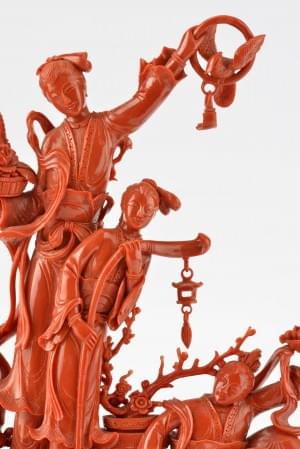 Corail rouge sculpté, Chine, XXe s, 24x24 cm, 1020 g