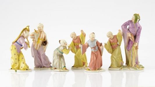 ensemble de 6 statuettes, Allemagne, XIXe s, porcelaine émaillé...