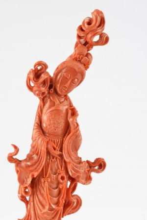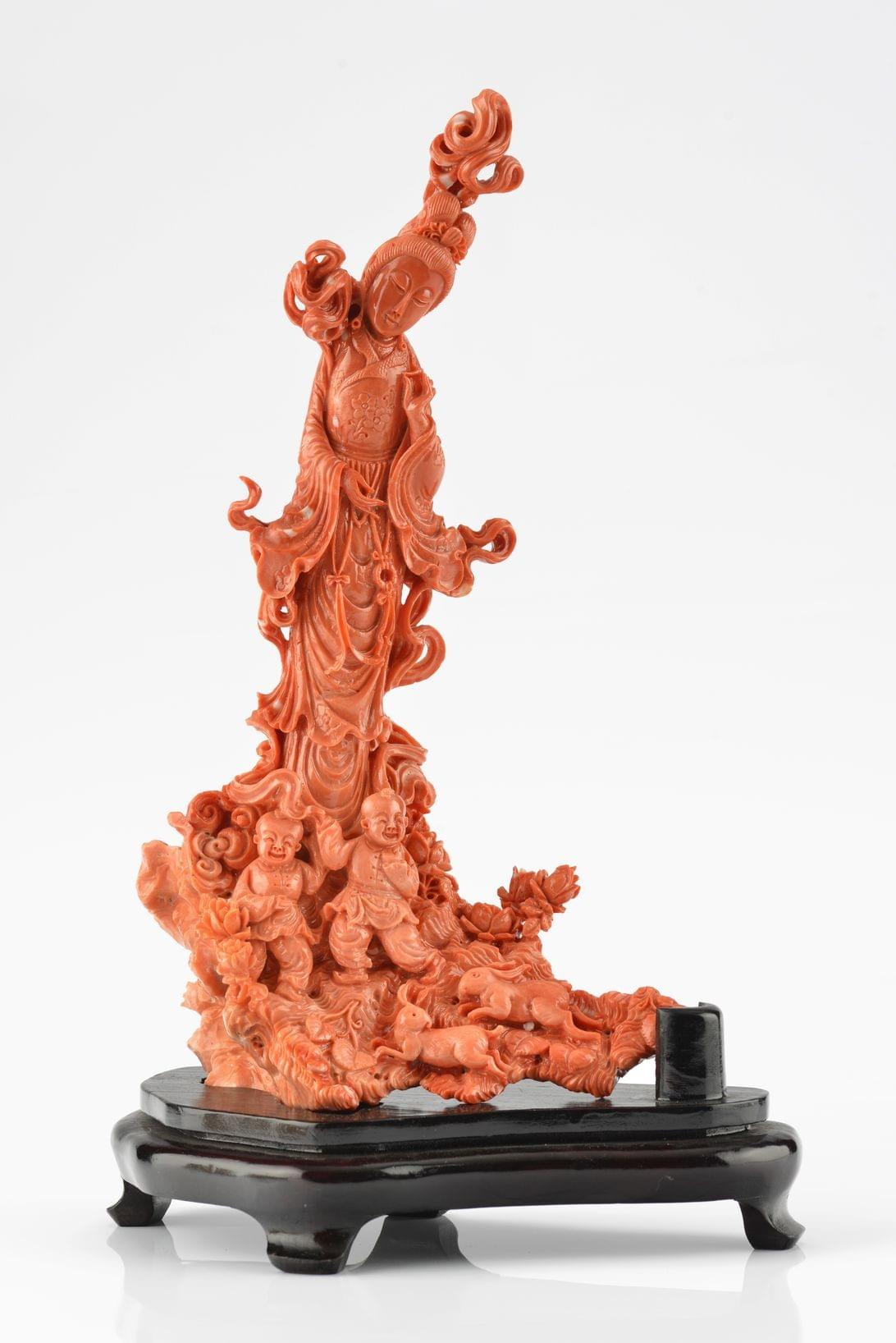 Corail rouge sculpté, Chine, XXe s, H 31 cm, 1070 g