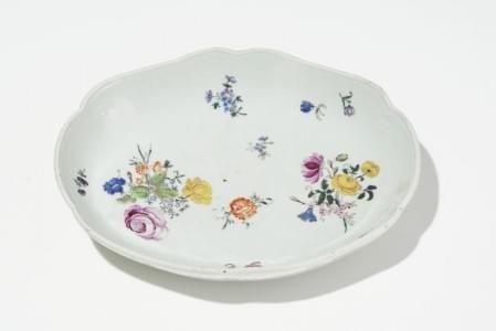 Porcelaine à décor de bouquets de fleurs polychromes, L 27 cm