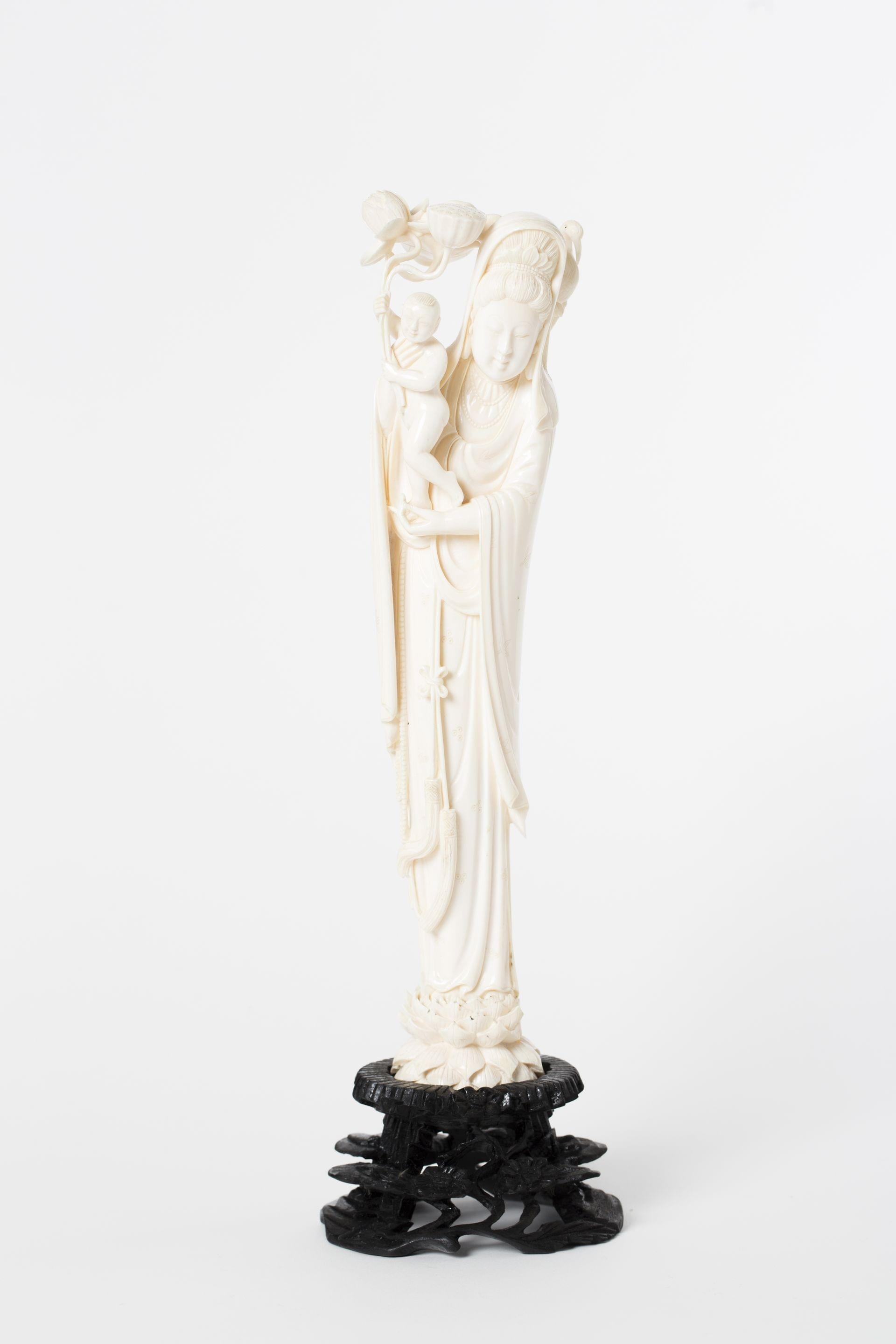 Porcelaine émaillée bleu blanc à décor de pivoines, H 32 cm