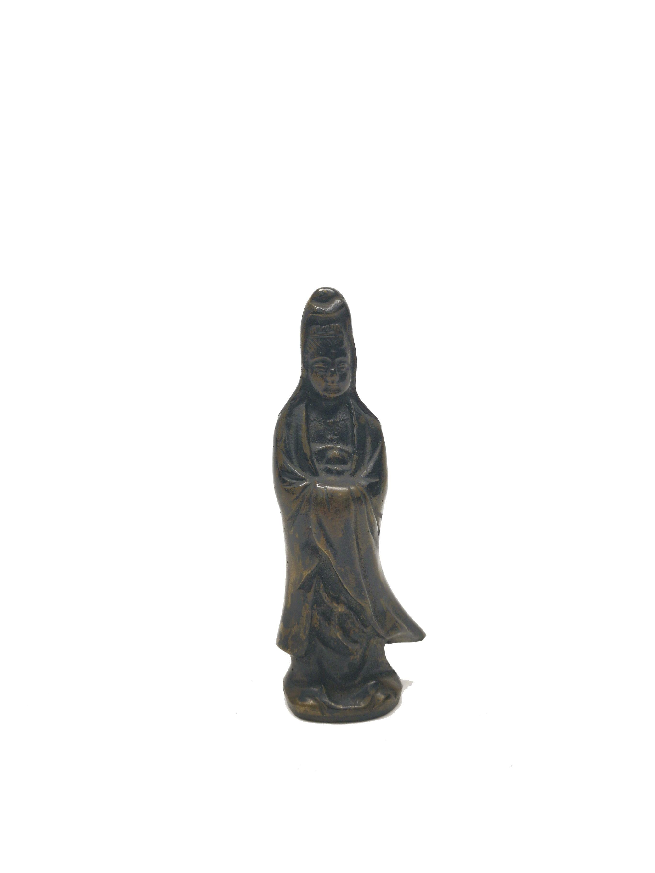 Porcelaine émaillée bleu blanc à décor de chiens de Fô, H 21 cm....