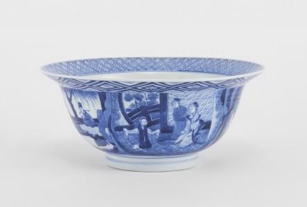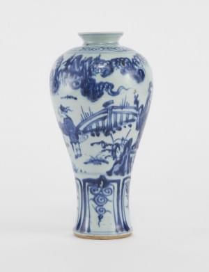 Porcelaine blanc bleu à décor d'un jardin animé, H 22 cm