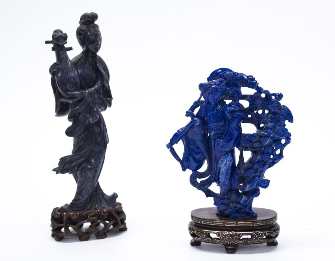 Sodalite et lapis lazuli sculpté, H 13 et 18 cm