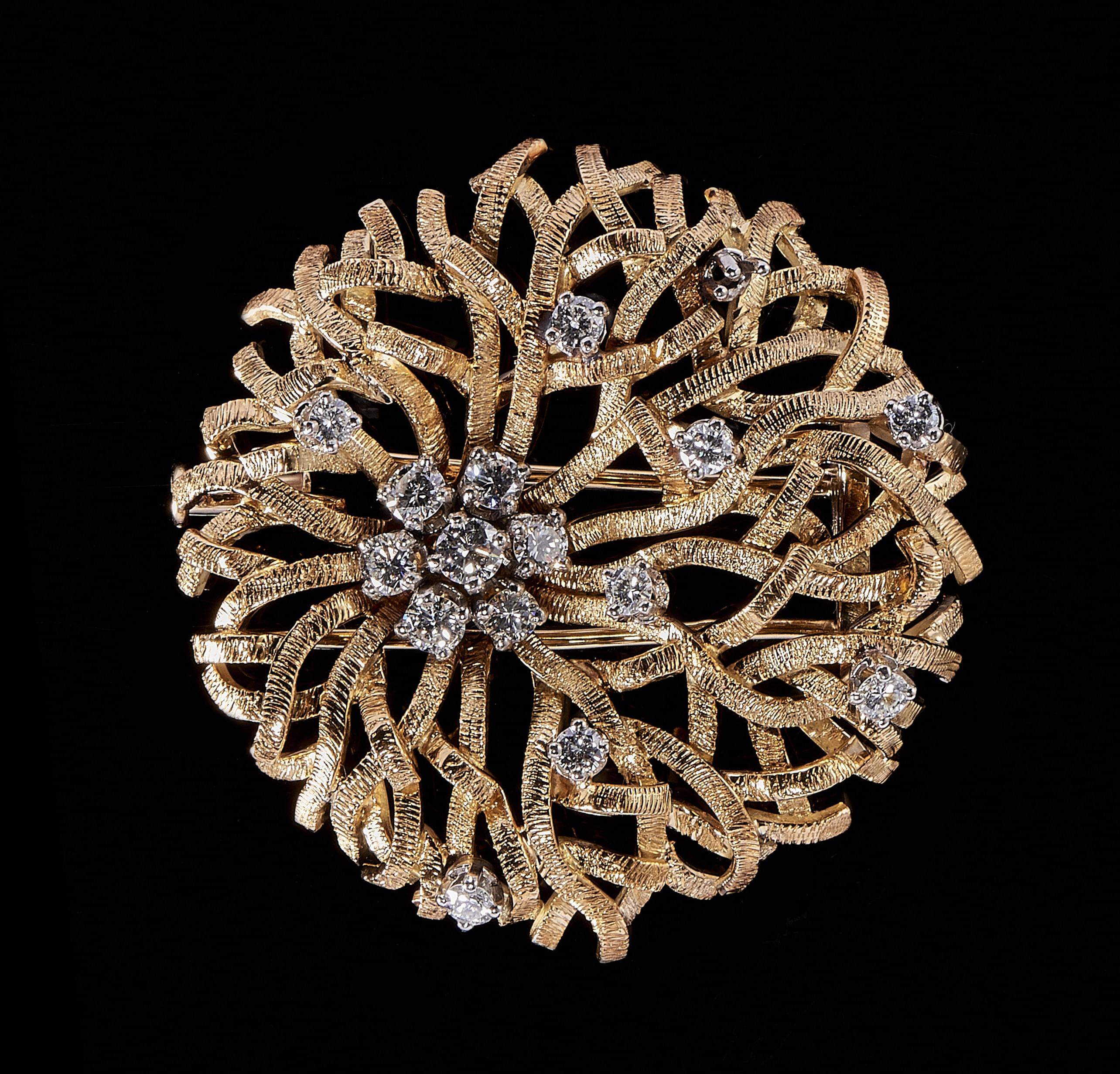 757. Gübelin, broche stylisée ajourée sertie de diamants