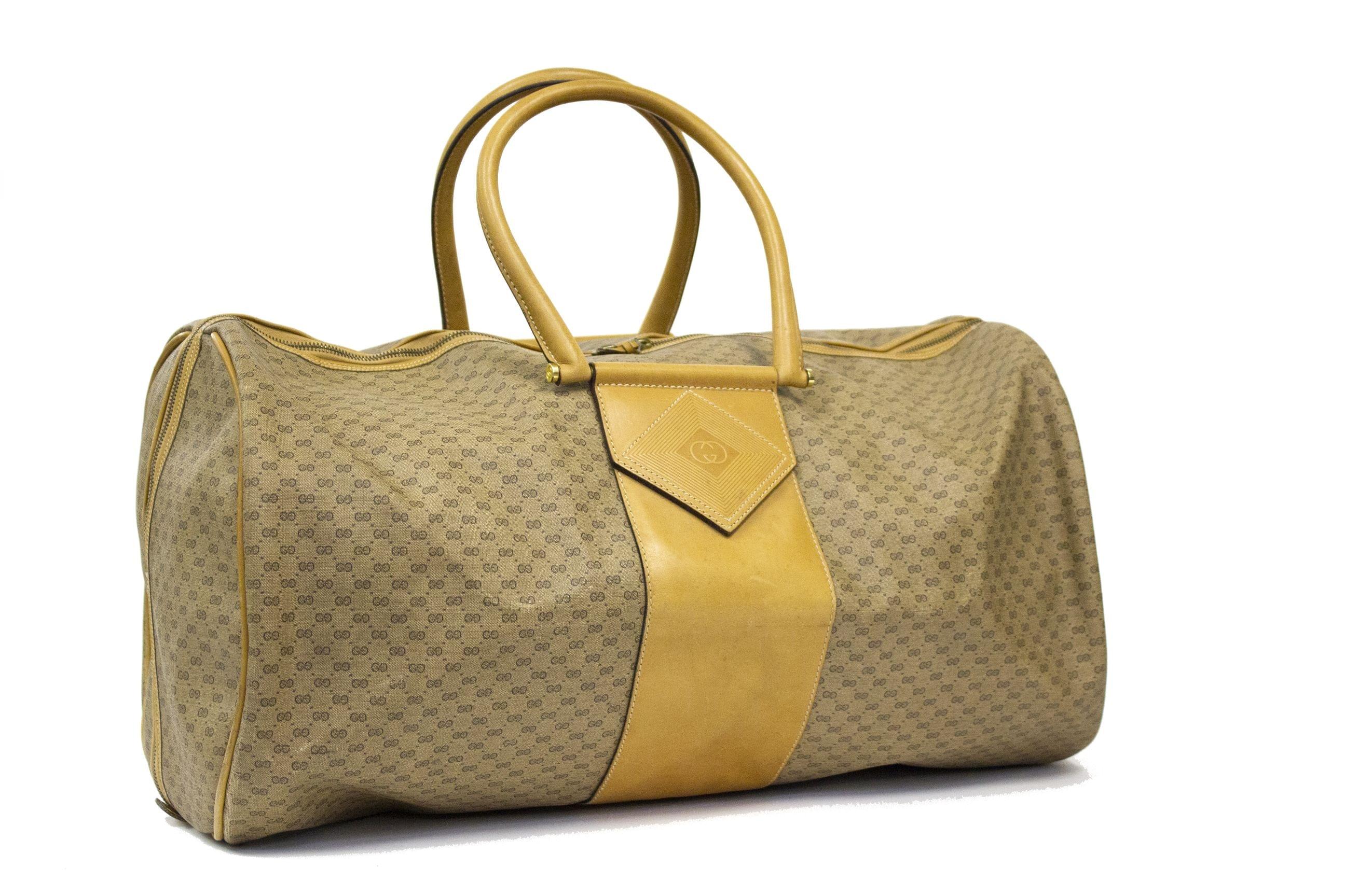 Tissu monogrammé et cuir naturel, garniture en métal doré, 30x55x30 cm