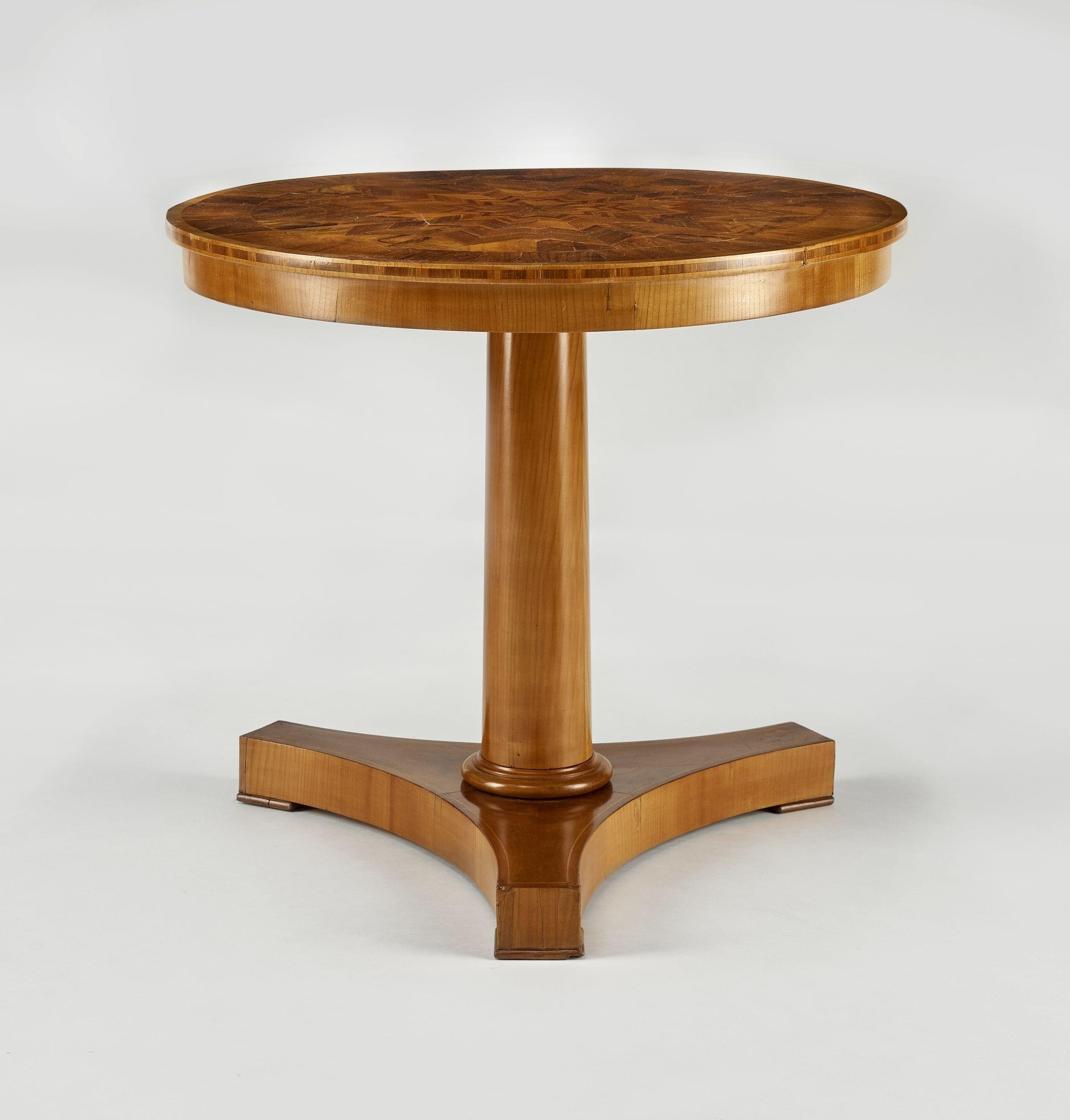 Plateau marqueté à motif rayonnant, bois fruitier, 73x81 cm