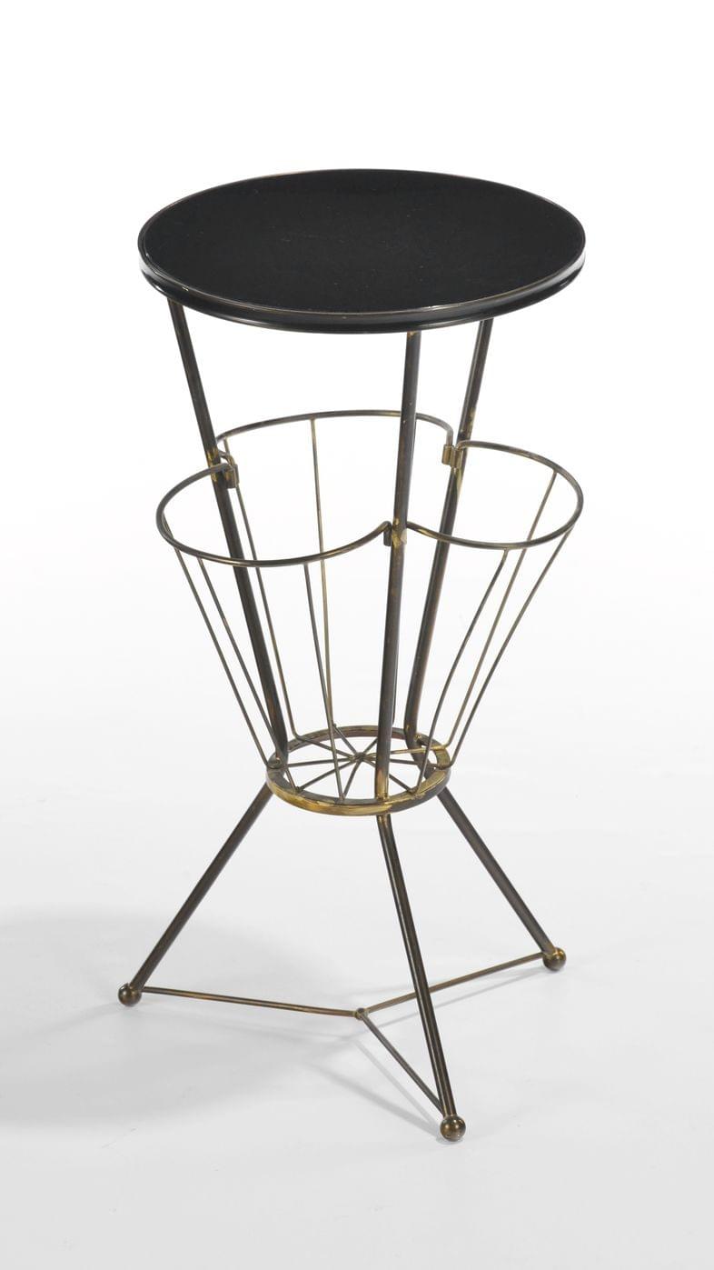Bois laqué noir rouge et or à décor de fleurs, piètement en bamb...