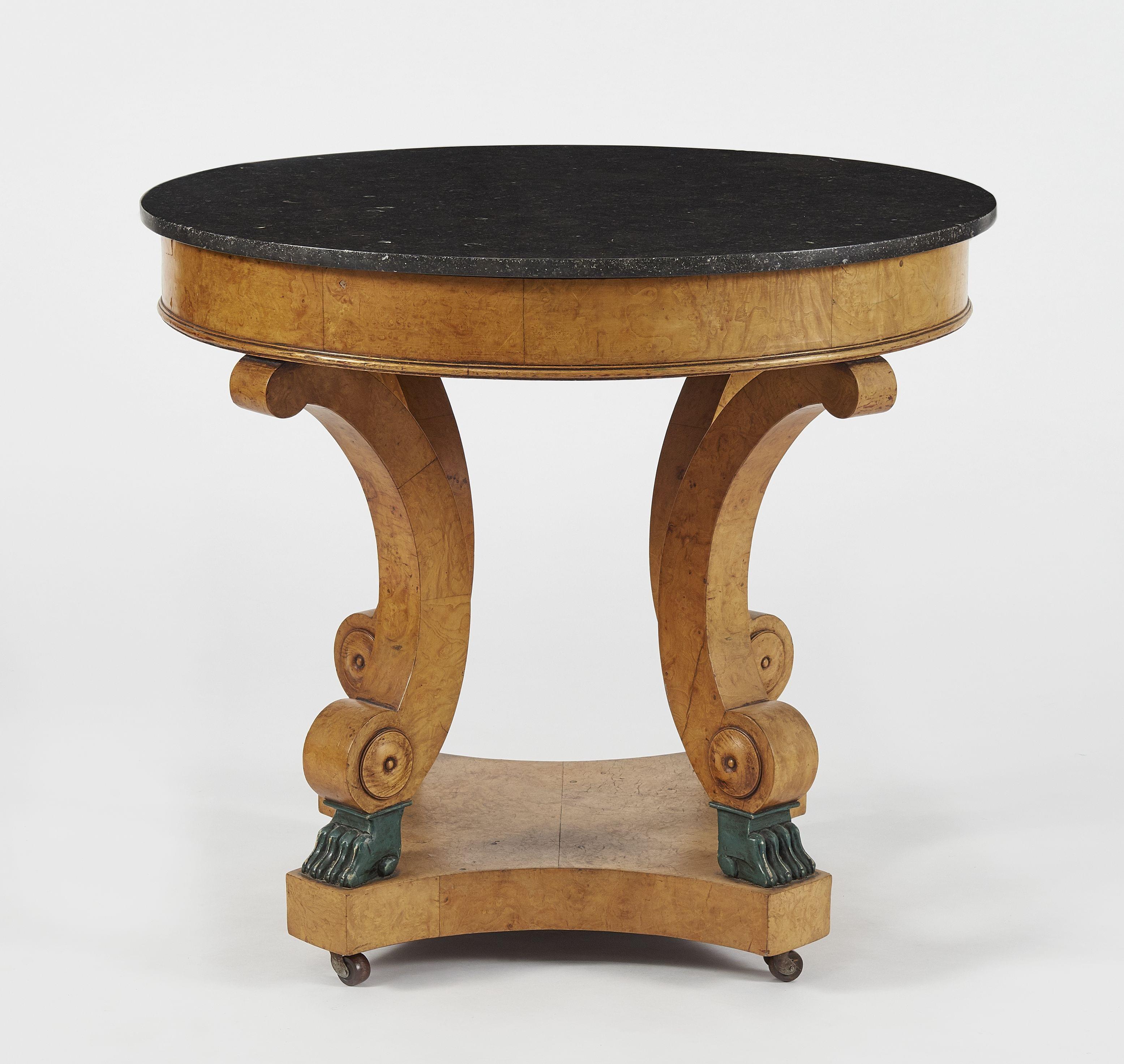 Placage de bois clair, pieds griffes et dessus de granit, 80x90 cm