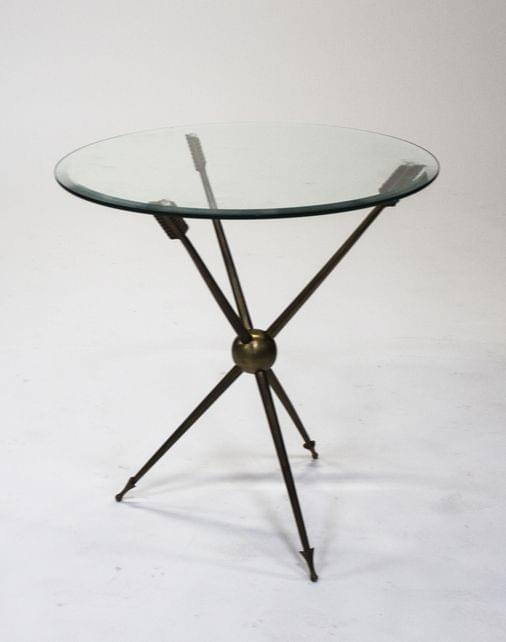 Piètement en flèches réunies, plateau de verre, circa 1960, 53x50 cm