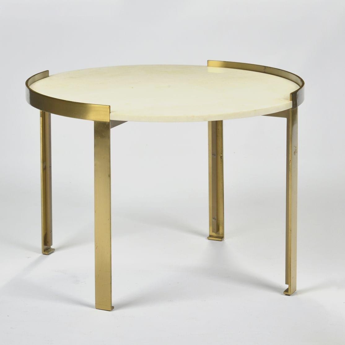 Piètement tripode à pieds griffes, acajou et marbre gris, D 86 c...