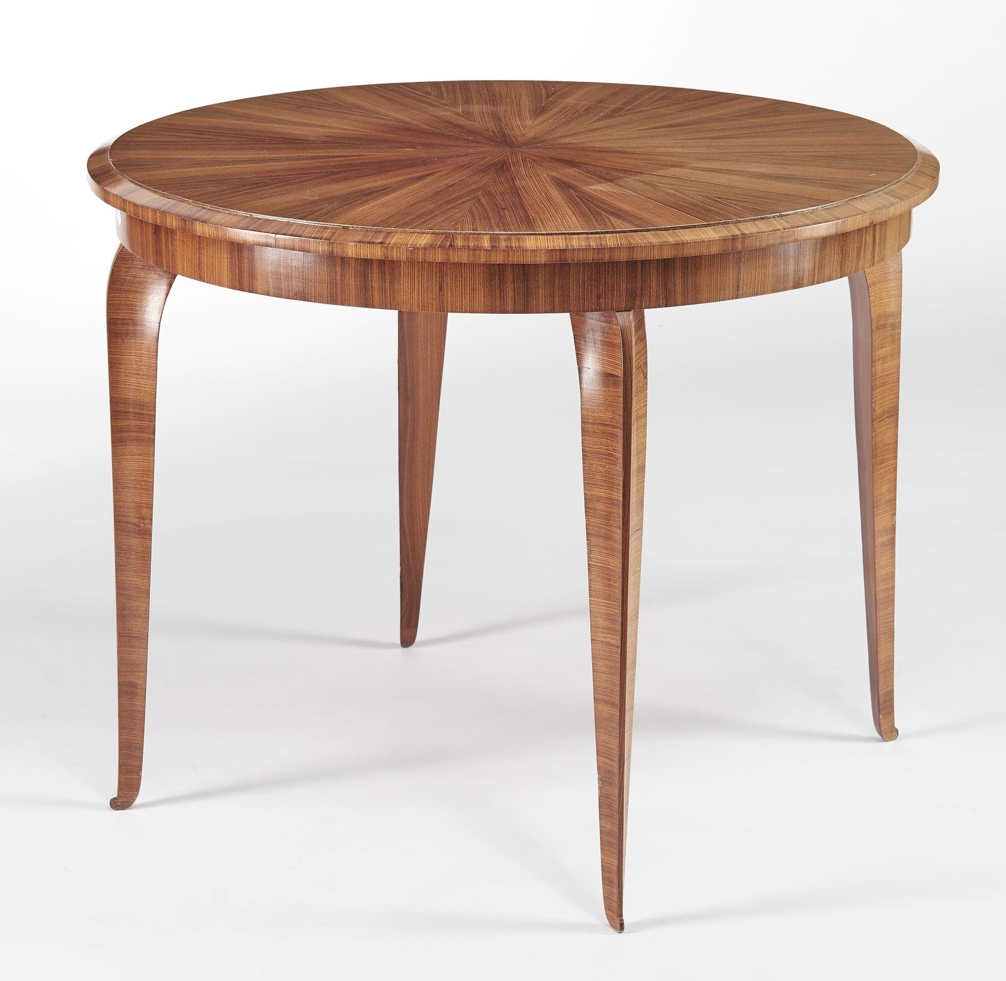 Quatre pieds galbés terminés par un petit enroulement, bois de placage, 66x83 cm