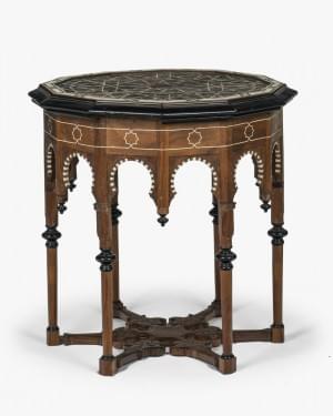 Bois naturel et noirci, incrustation d'os, 67x60 cm