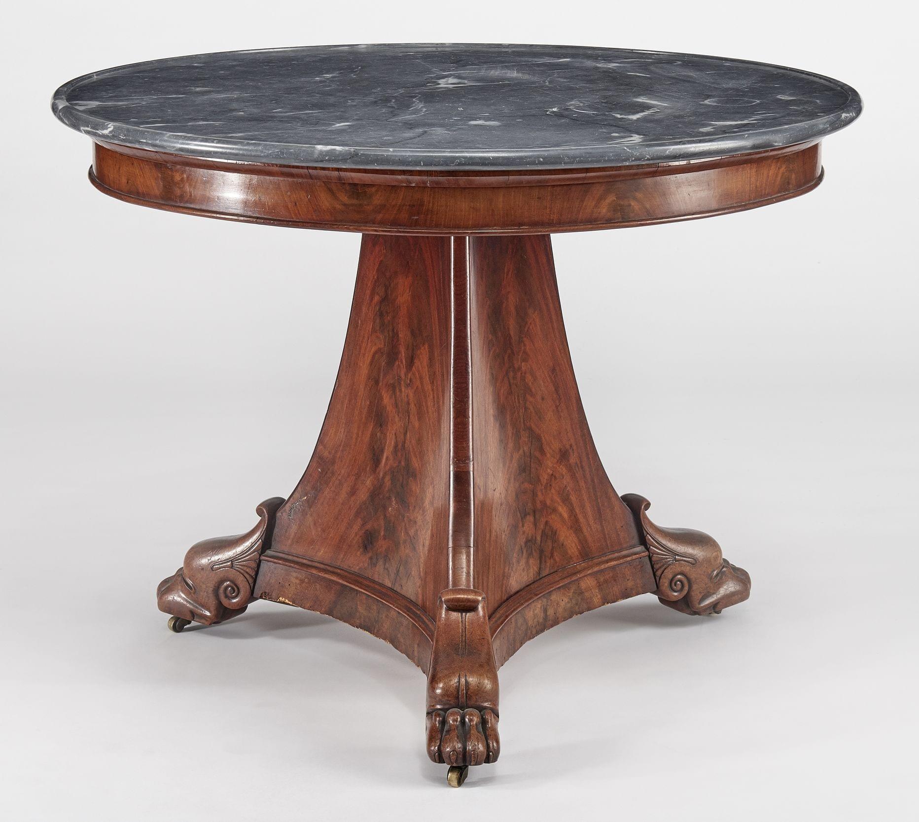 Pieds griffes, acajou et marbre veiné à gorge, 75x93 cm