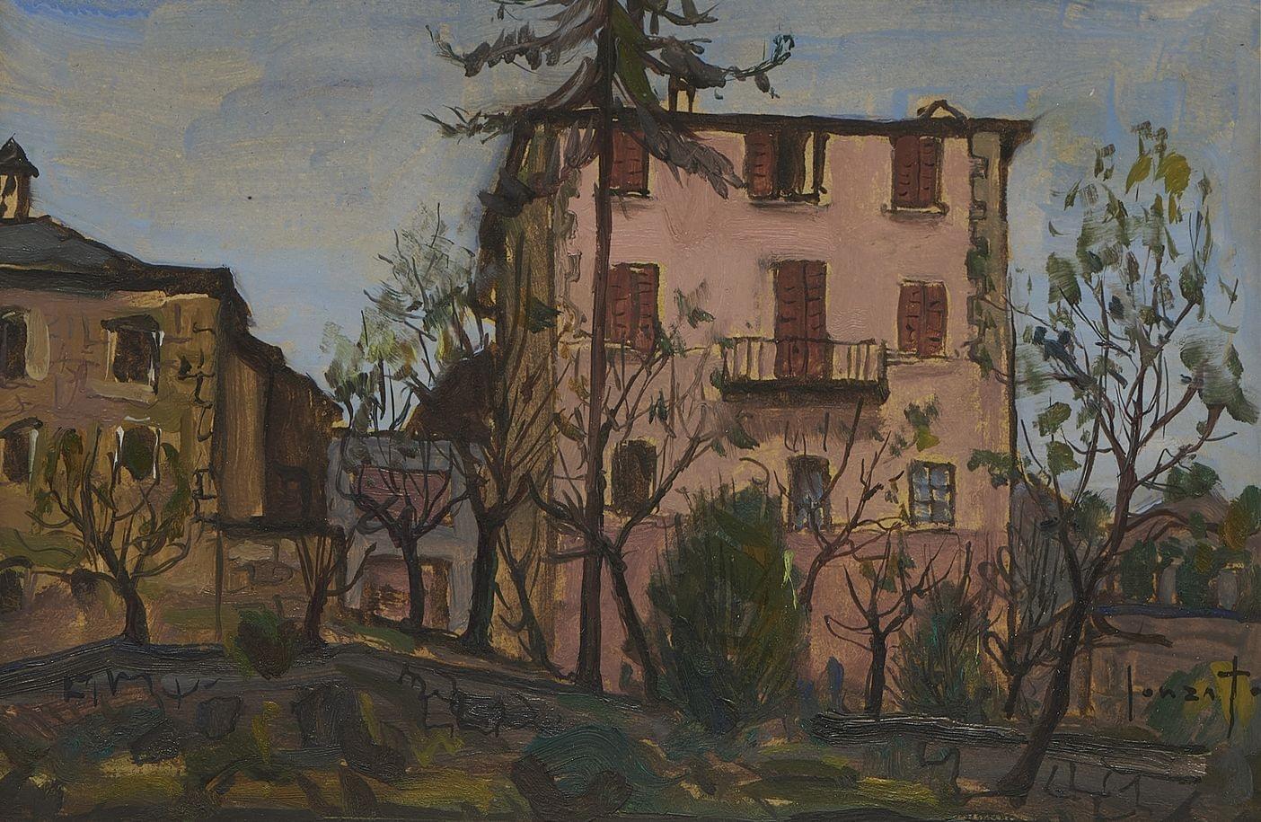 Villa Cathia, Valle Maggio, gouache sur papier, signée, 15x23 cm