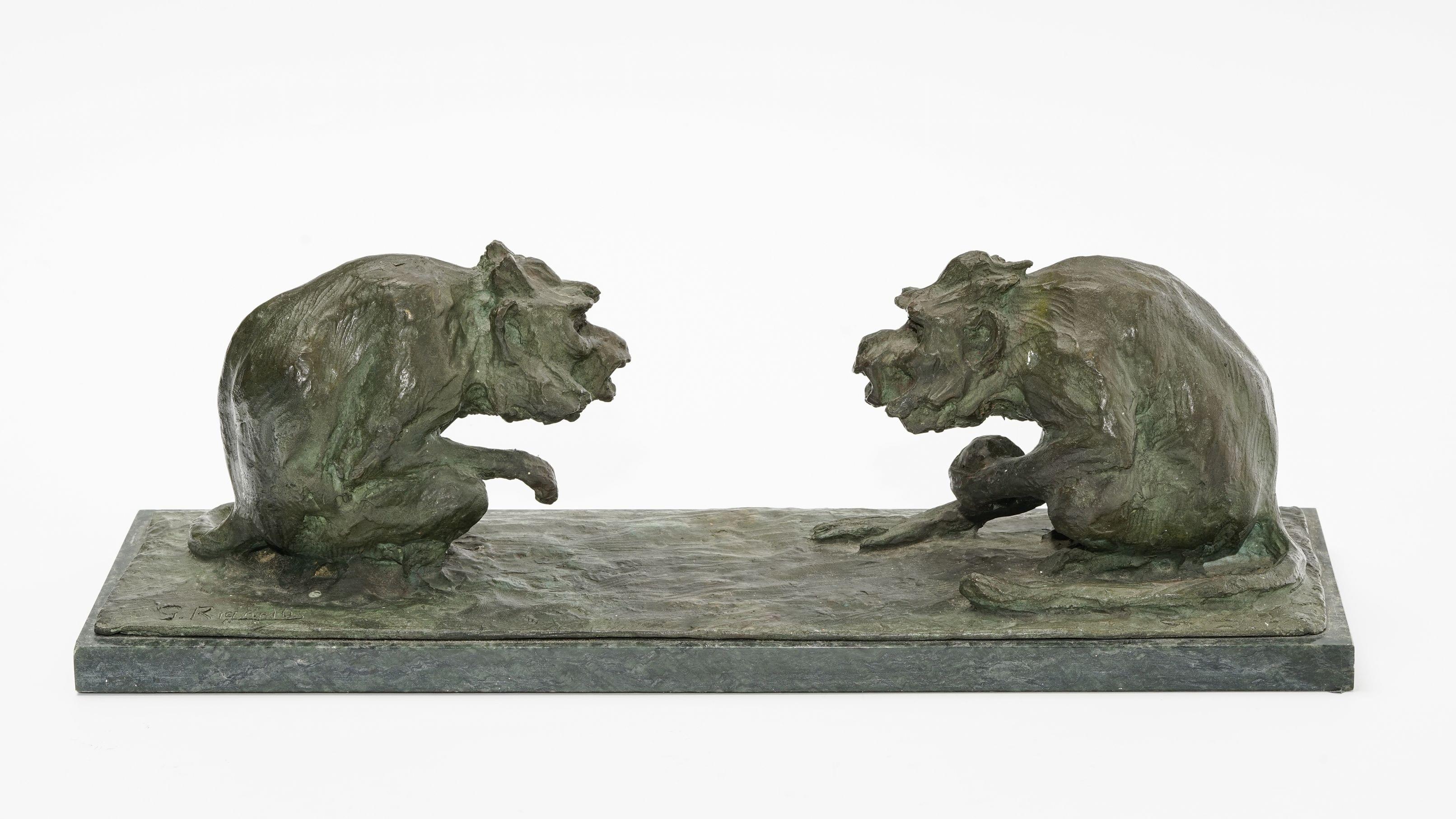 Deux babouins, bronze à patine brune, signé, L 49 cm