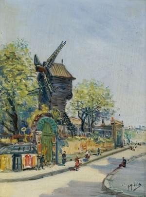 Le moulin de la Galette, huile sur panneau, signée, 31x23 cm