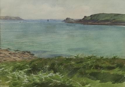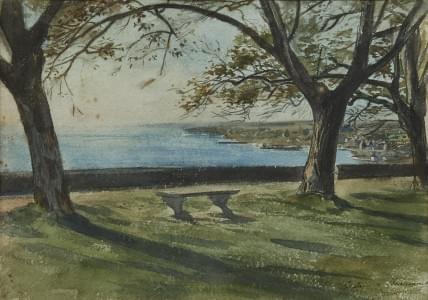 Paysage au coucher de soleil, huile sur toile, monogrammée, 43x6...