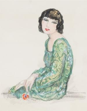 Jeune femme à la fleur, lithographie rehaussée à l'aquarelle et...