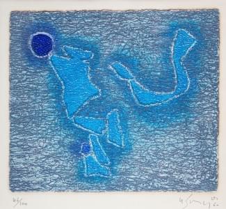 Composition abstraite, lithographie en bleu et gaufrée, numéroté...