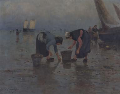 Récolte à marée basse, huile sur toile, signée, 50x65 cm