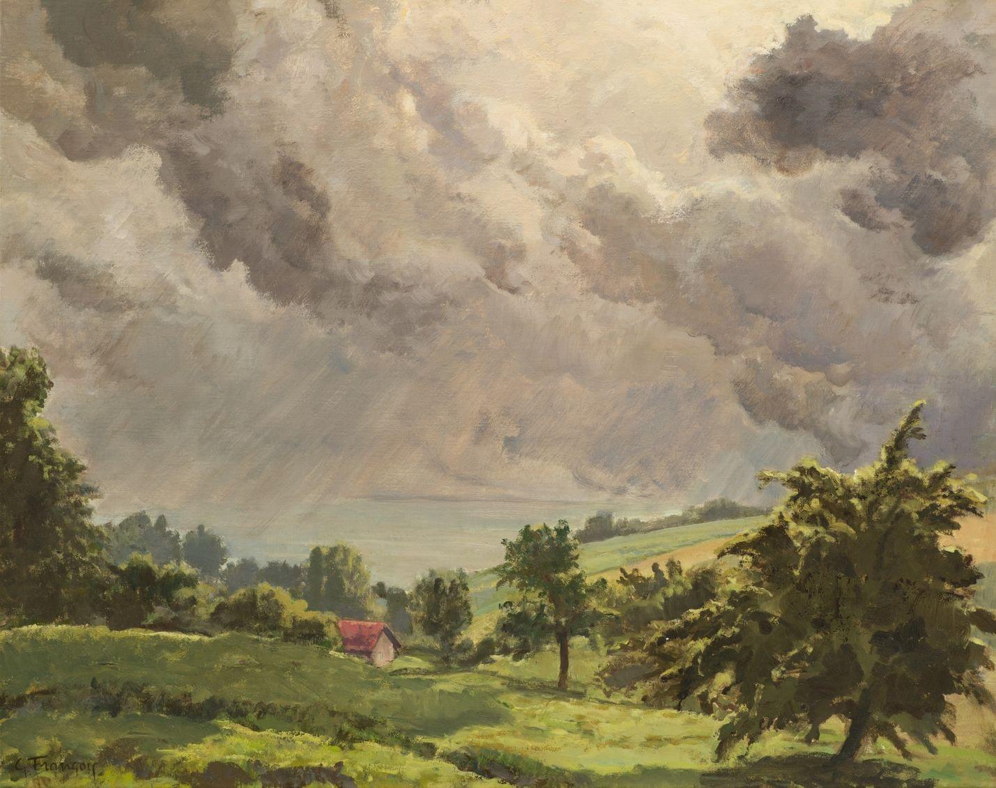 Bûcheron au travail, aquarelle et gouache sur papier, signée, ét...