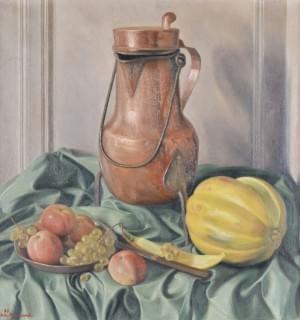 Le melon, huile sur toile, signée, datée 37, 67x62 cm