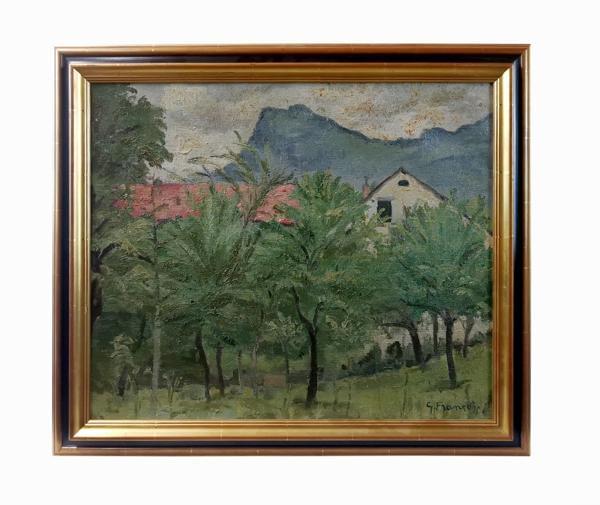 Odalisque, huile sur toile, signée et datée 43, 65x81 cm. Etique...