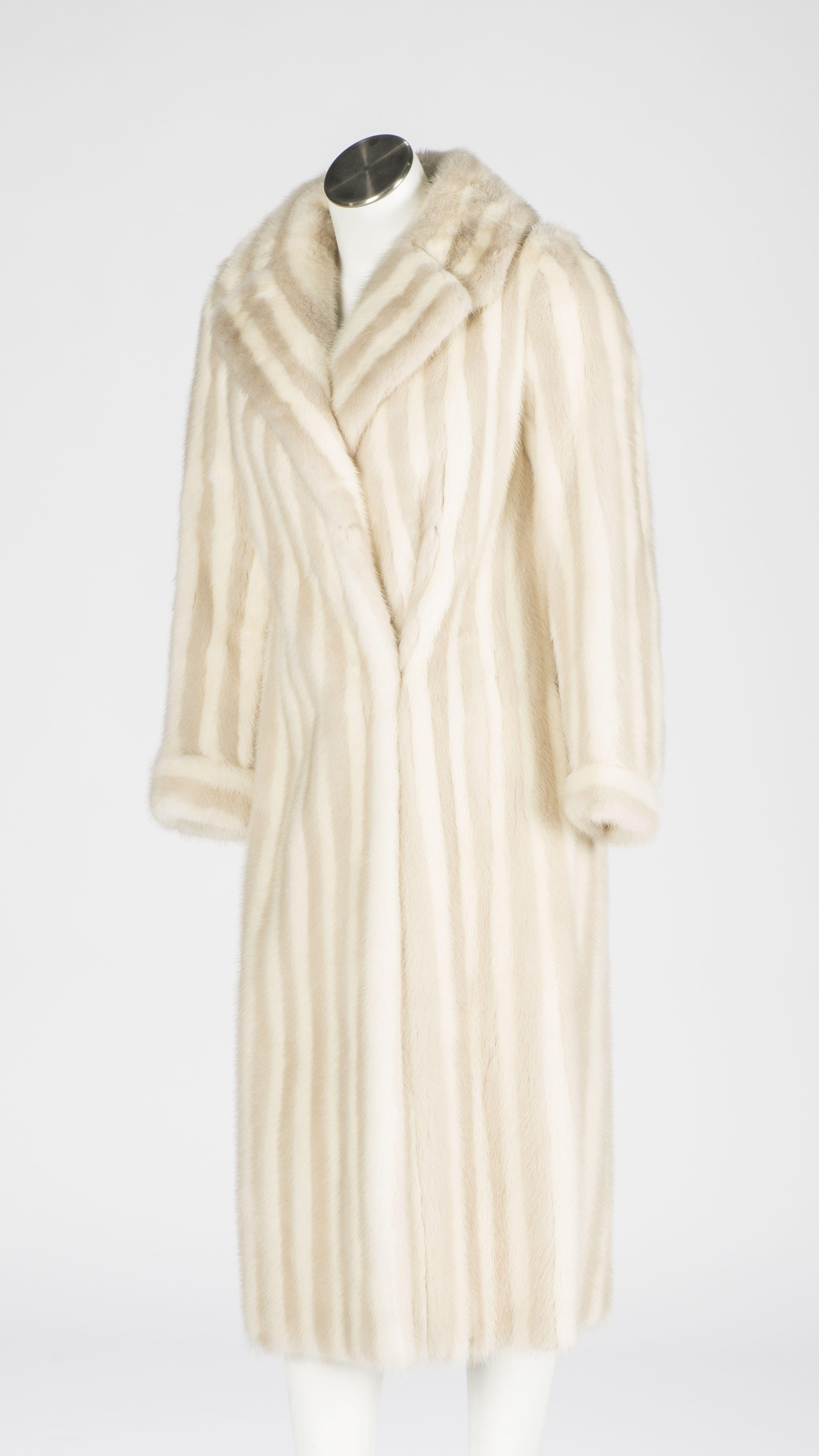 Manteau long, fourrure, astrakan bordé de renard au col, aux poi...