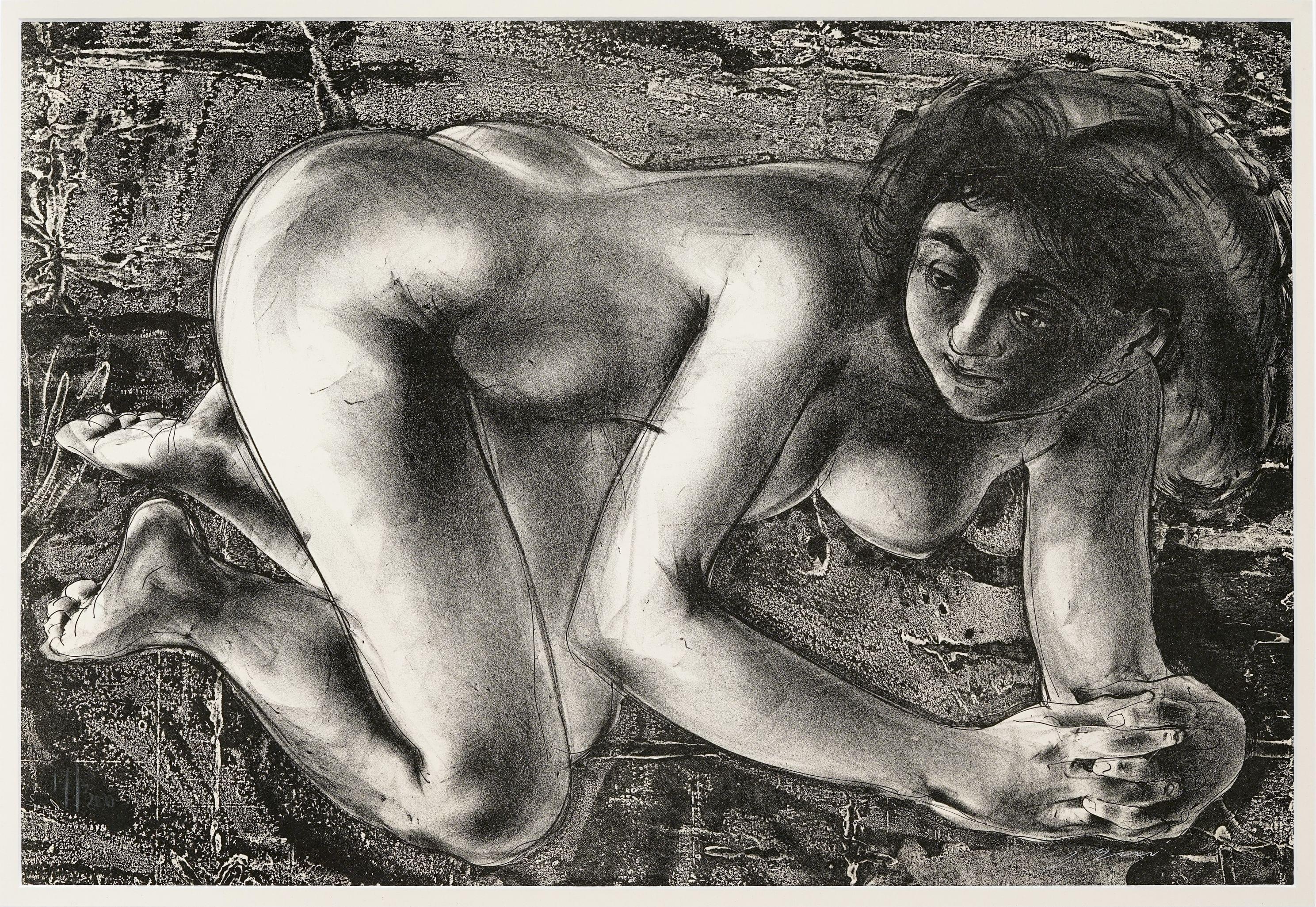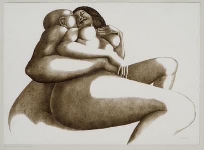 Couple enlacé, encre sur papier, signée et datée 77, 30,5x41,5 c...