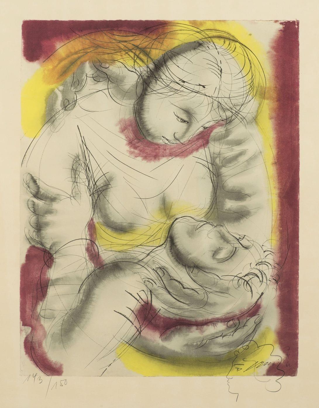 Pietà, impression offset, signée, enrichie d'un dessin de profil à la mine de plomb et numérotée 143/150, 74x62 cm