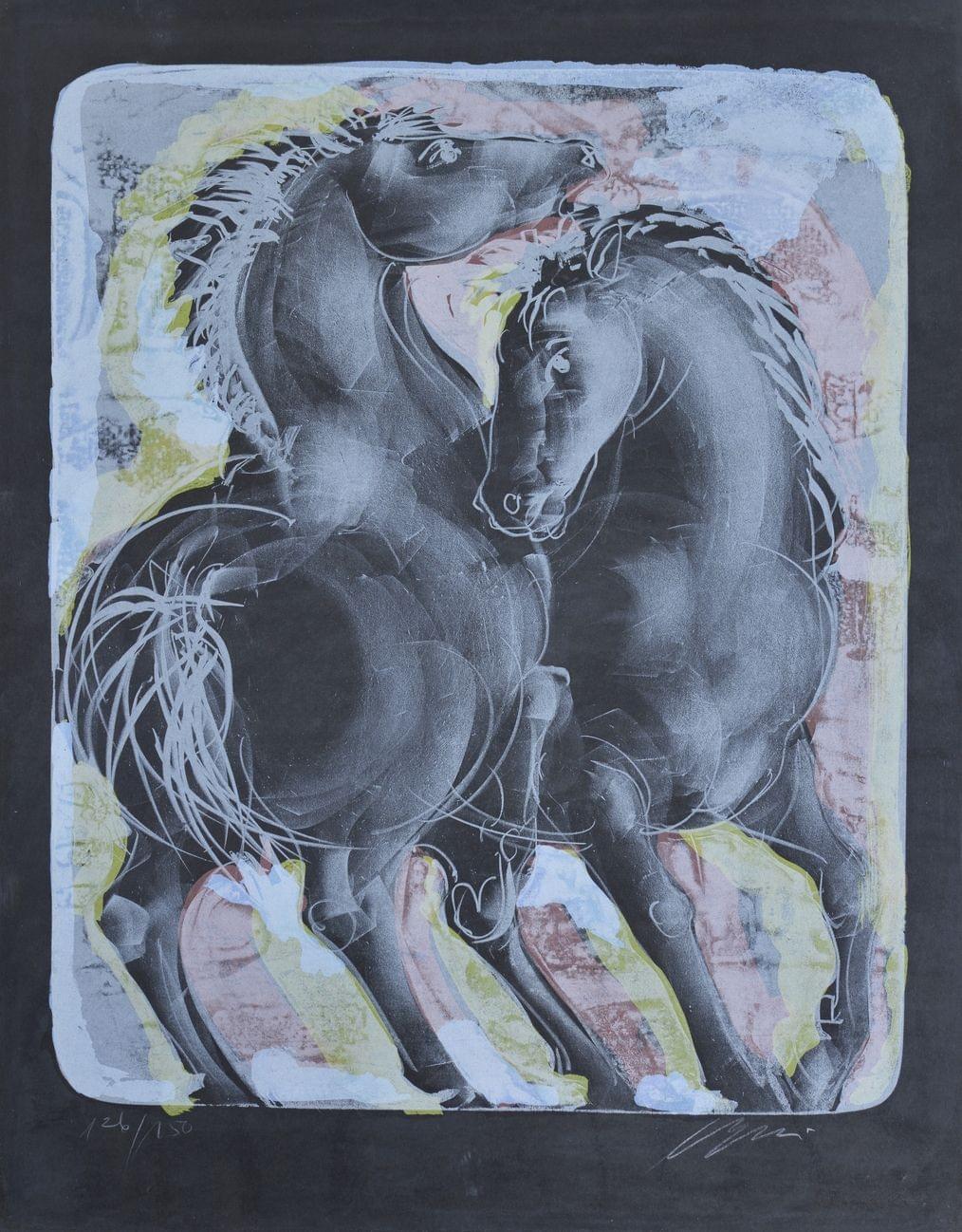 Deux chevaux, lithographie signée et numérotée 126/150, 64x48 cm
