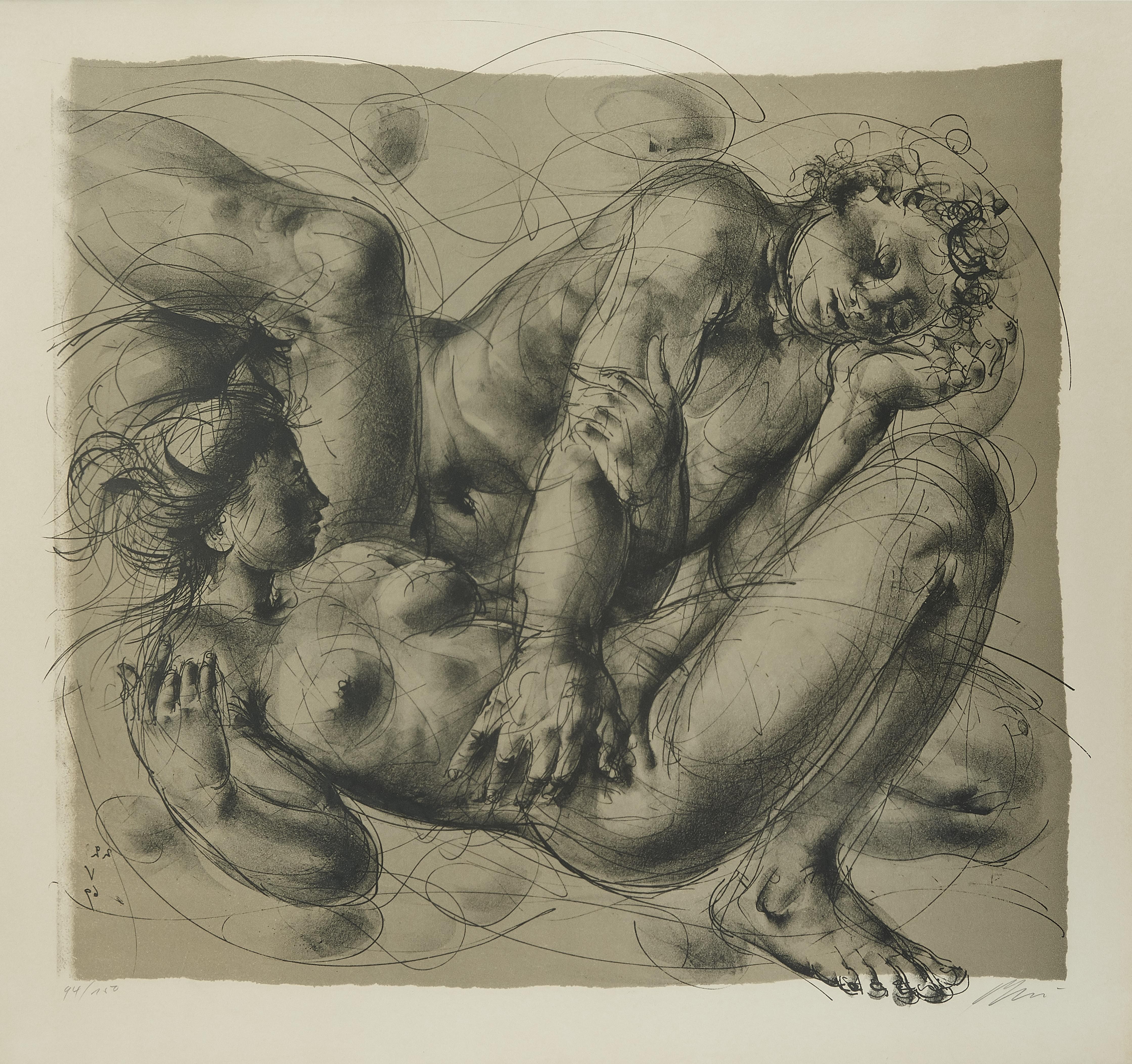 Couple enlacé, lithographie, signée et numérotée 84/150, 74x80 cm