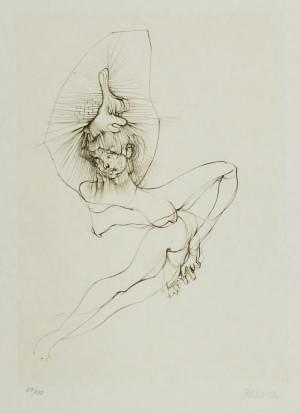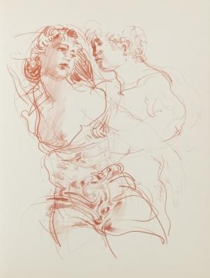 Pietà, impression offset, signée, enrichie d'un dessin de profil...