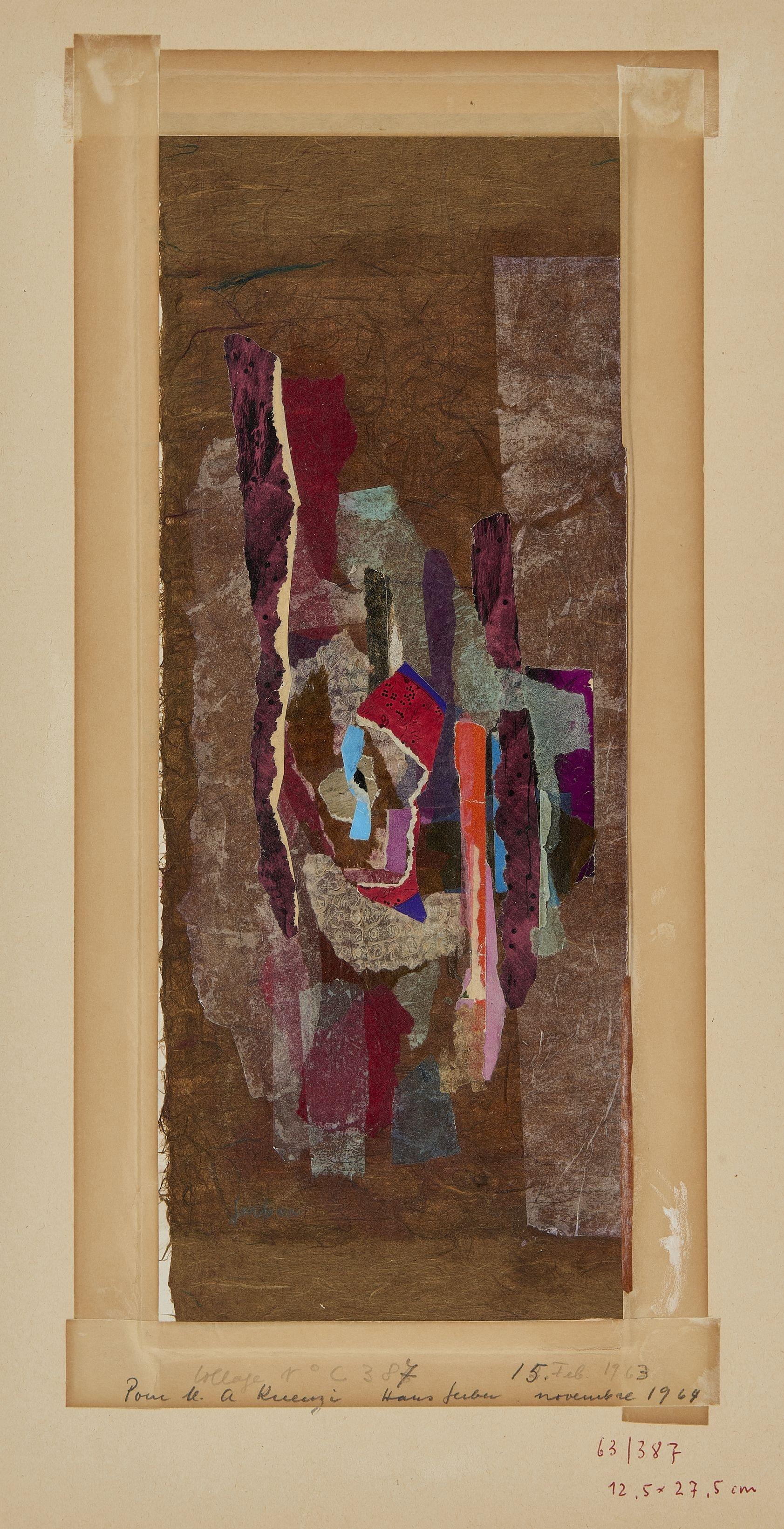 Collage, technique mixte, signée, 27x12,5 cm.