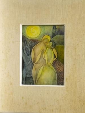 Cheval, peinture sous-verre, signée et datée 58, 35x29 cm