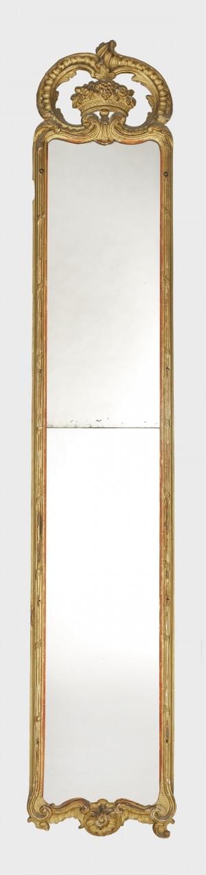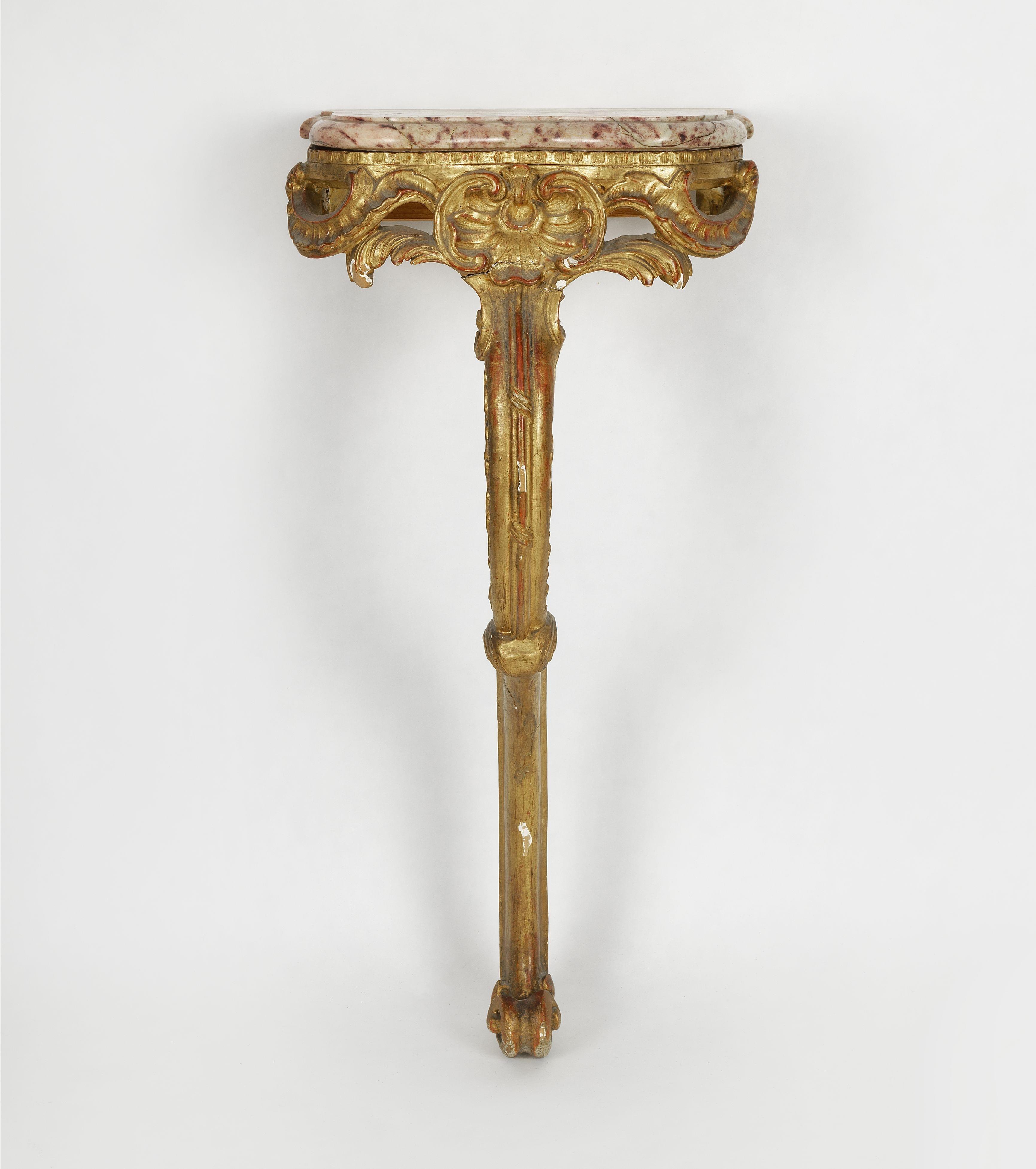 Bois sculpté et doré, marbre rapporté pour la console, H 200 et 77 cm