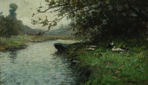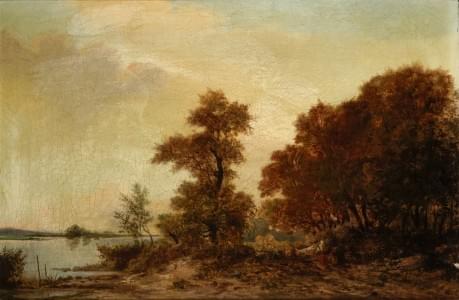 Paysage avec cours d'eau, huile sur toile, signée et datée 1872,...