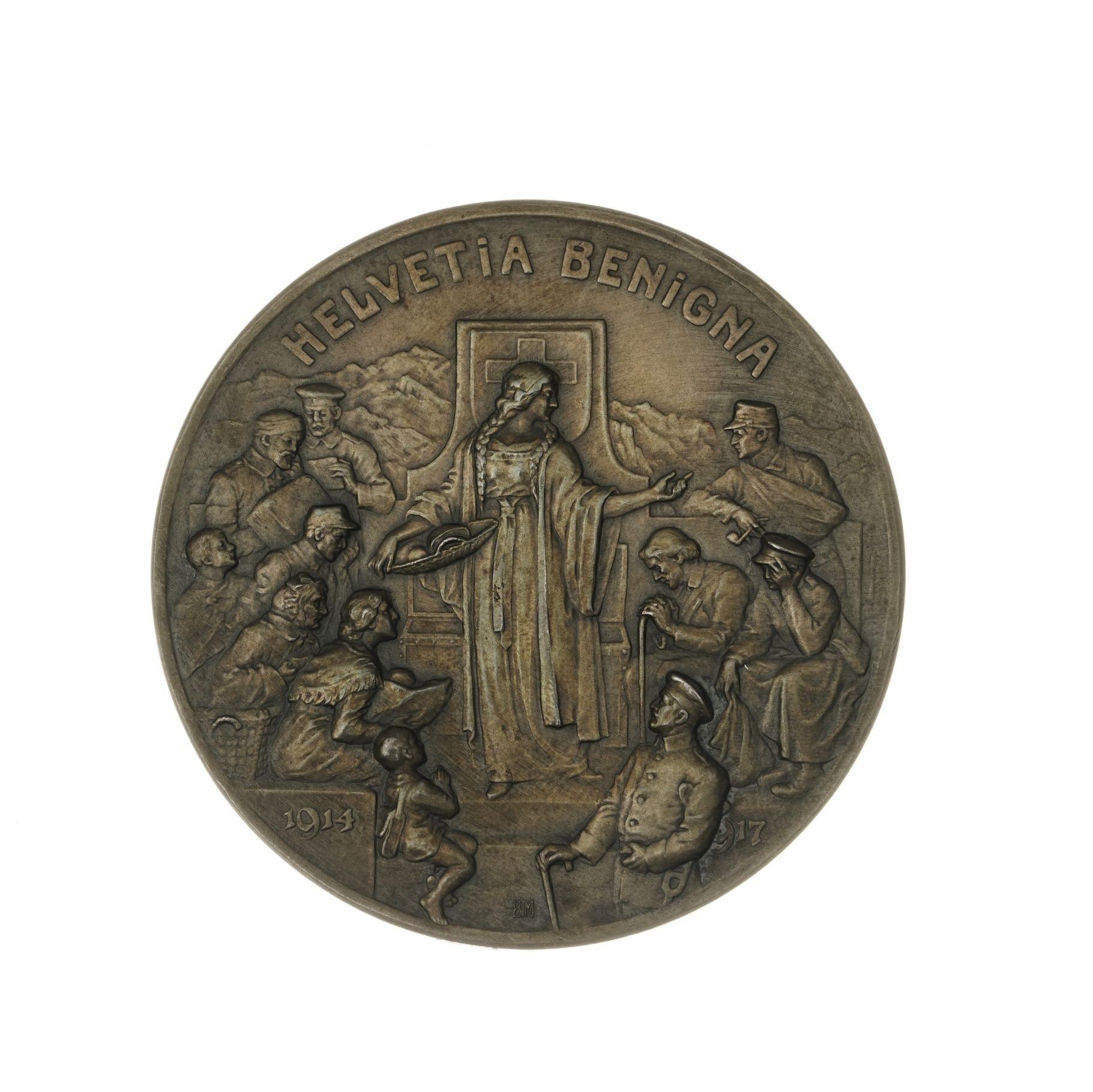 118. Helvetia Benigna, grande médaille en argent 990, B.H. Mayer, Pforzheim, dédicacée "Das Dankbare Deutschland zur Erinnerung an den Weltkrieg", D 6 cm