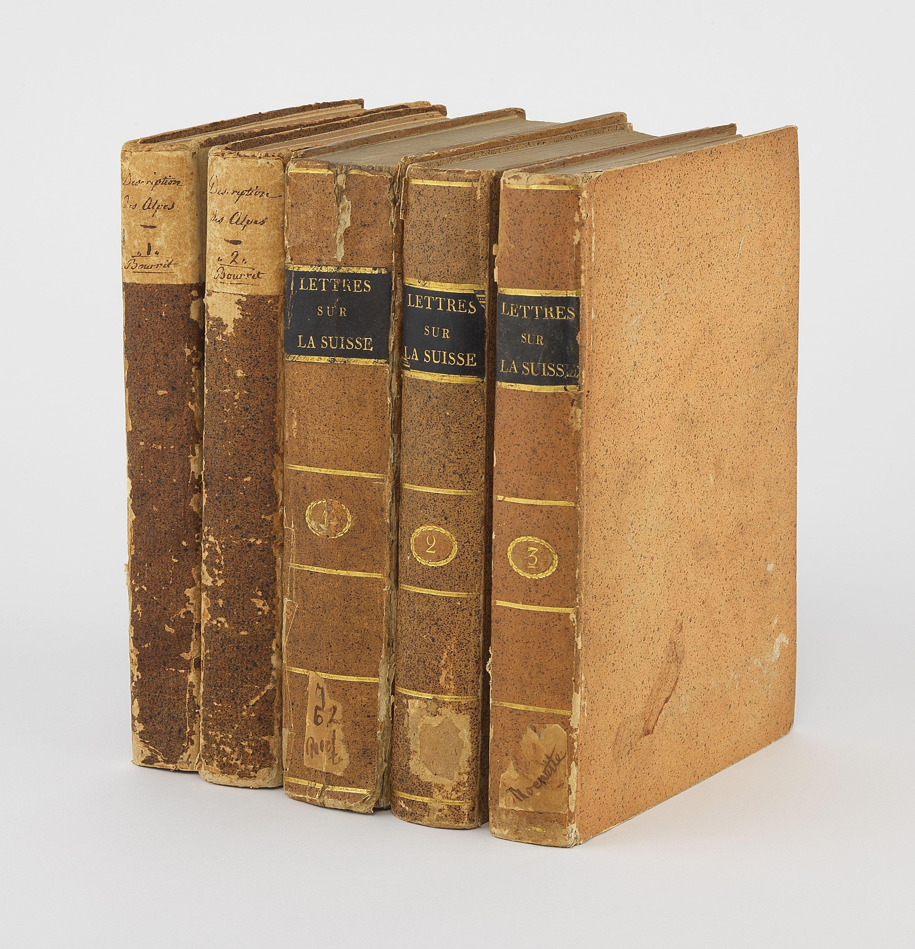 Deux vol. in 8°, cartonnage d’attente de l’époque. Ex. bien complet de la belle carte dépliante et des huit planches gravées dépliantes. On joint : ROCHETTE (Raoul) : Lettres sur quelques Cantons de la Suisse, écrites en 1819. Paris, Nicolle, 1820. Lettres écrites en 1820. Paris, Nepveu, 1822. Lettres écrites en 1824 et 1825. Paris, Froment, 1826. Ens. trois volumes in 8°, cartonnage d’attente de l’époque (défauts au cartonnage du t. I).