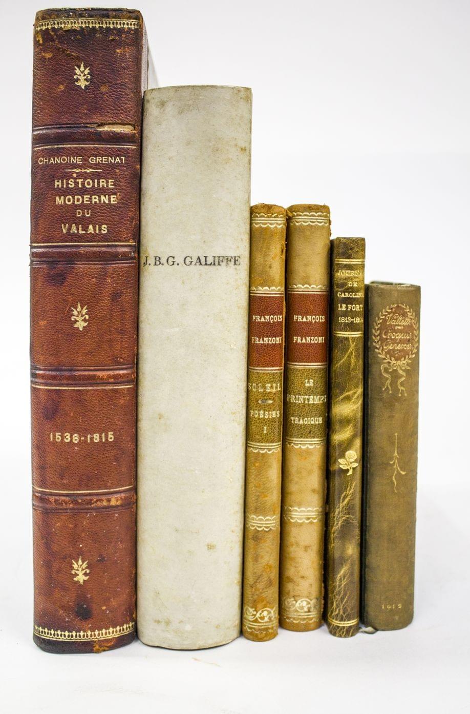 - GRENAT (chanoine): Hist. moderne du Valais. Genève, sans date, in-8° demi chagrin rouge à coins ornés, ex. comprenant 25 ill. H.T.