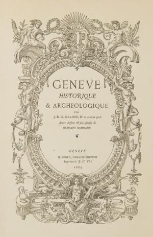 3485. HELVETICA.- GALIFFE: Genève historique et archéologique. Genève, Georg, 1869; in-4° vélin à rabats (il manque les lacets), ex. complet du supplément publié en 1872.