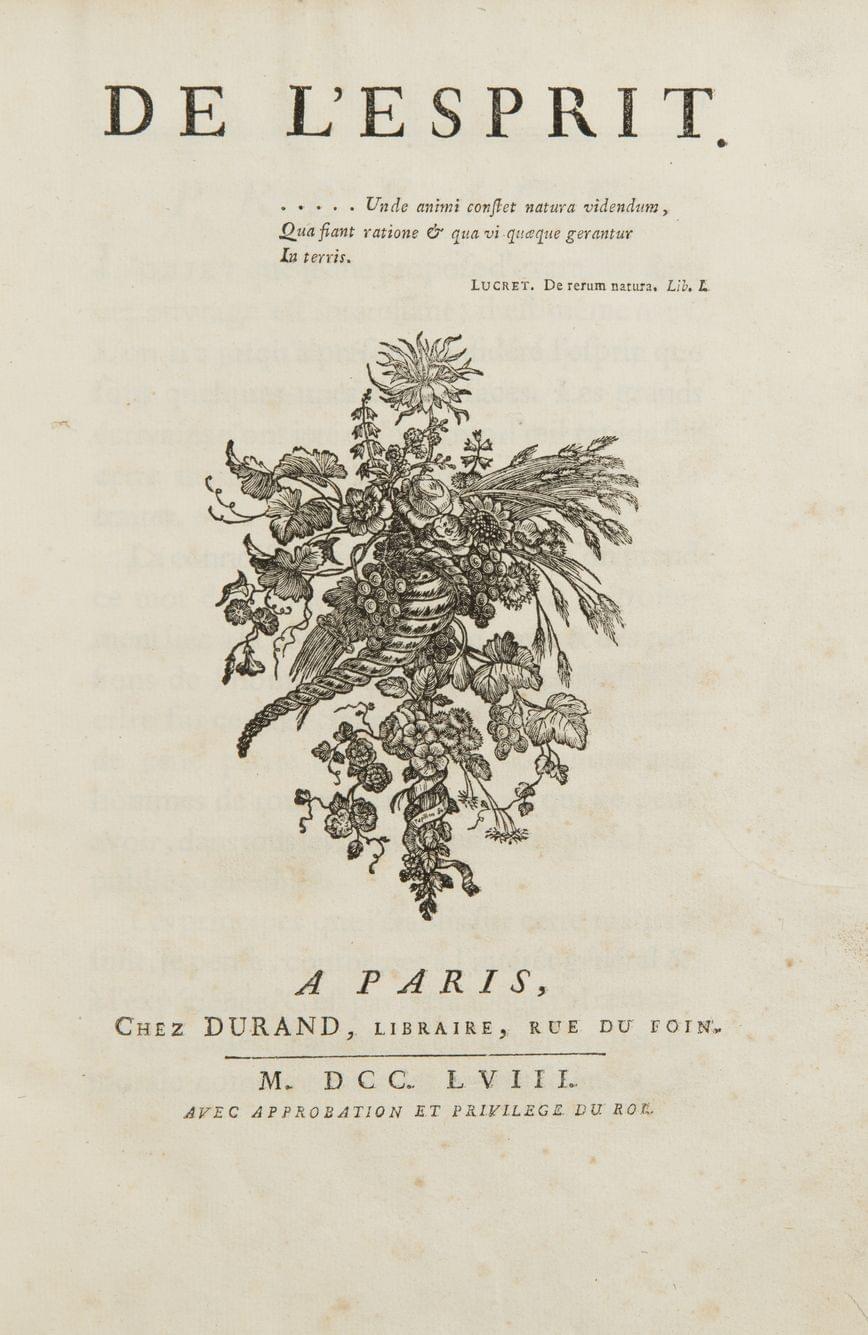 59. HELVETIUS: De l’Esprit. Paris, Durand, 1758;