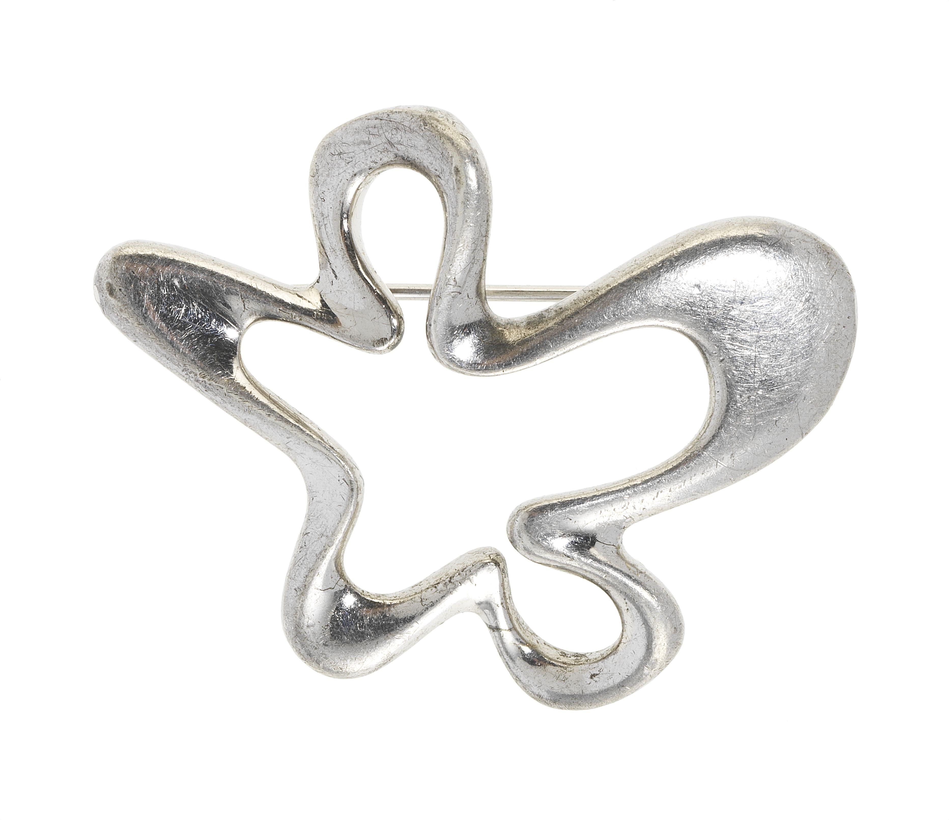 145. Broche Art déco à motif de nœud centré d'une perle probablement...