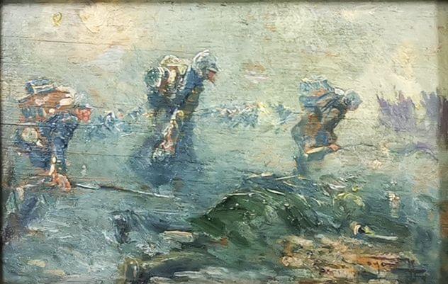 Paysage fluvial en Indochine, gouache sur papier, 55x80 cm