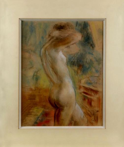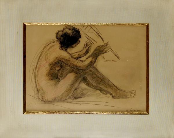 Femme nue accroupie de profil, mine de plomb sur papier, signée,...