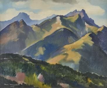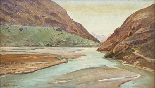 Vue du lac Mattmark, huile sur bois, signée et datée 1907, 19x33...