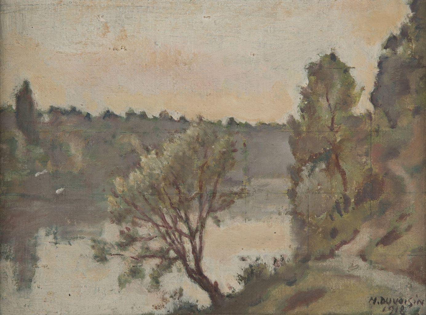 L'Allondon à Malval, huile sur panneau, signée et datée 45, 22x2...