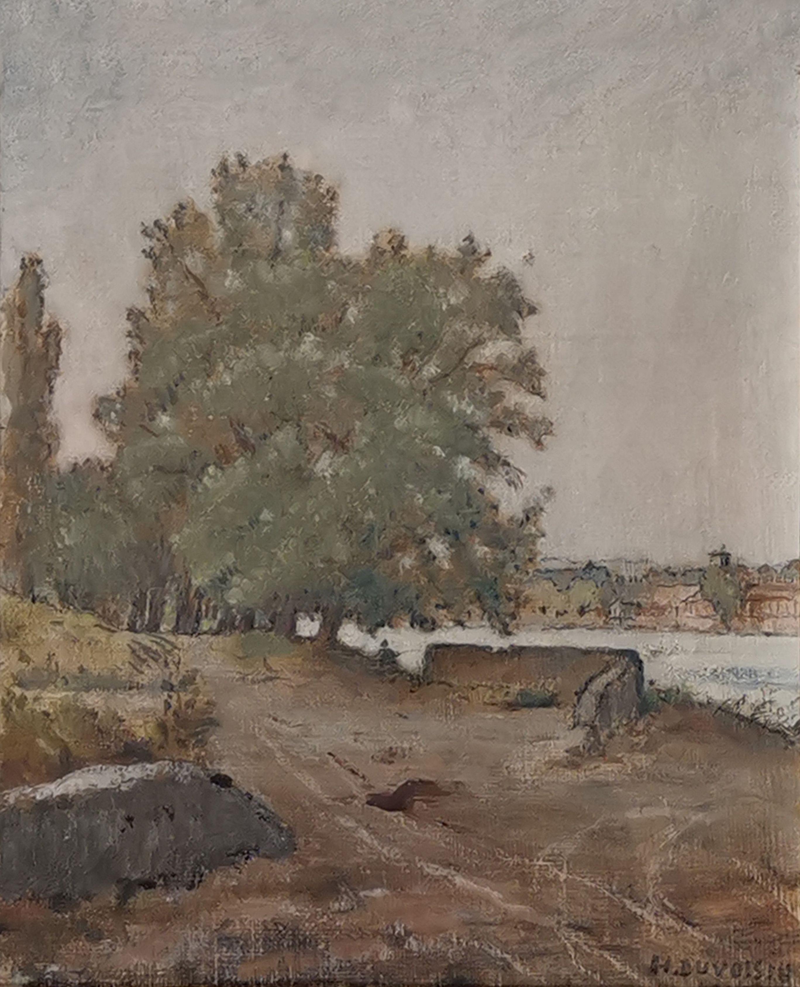 Paysage avec pêcheur, huile sur toile, signée, 40x33 cm